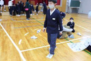 今日の昼休み、保健・給食委員会が中心となり、防災体験・クイズを催してくれました。