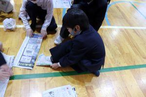 残りの2つのコーナーは、新聞を利用して防災グッズを作るところでした。