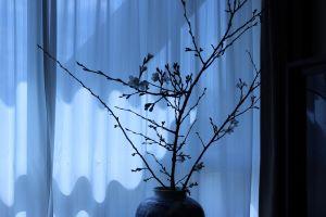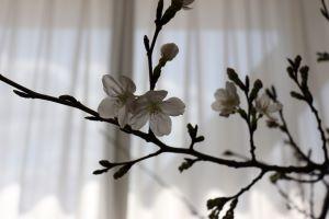 校庭の桜のつぼみは、まだまだ堅いですが、校長室に生けてある桜は、昨日開花しました。