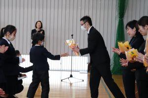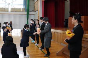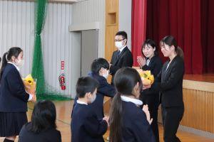 子どもたちから、お別れのメッセージとお花を渡しました。