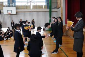 担任の中田先生の呼名の後、一人一人に卒業証書を手渡しました。