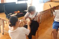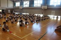今日は、雨となり、昼休みの練習は体育館で工夫して行っていました。