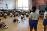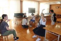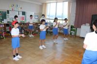 今日は、旗をふって音を出す練習をグループに分かれて行っていました。