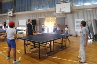 体育館では、卓球クラブとスポーツクラブが休憩を挟みながら活動していました。