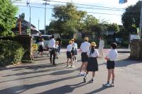 いつも通り集団登校で元気に挨拶しながら登校してきました。