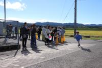 中島地区は、子どもたちや保護者の方が学校玄関前に集まり、集めてきたものを車から降ろします。