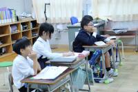 5年生、6年生がリードしながら、初めての1年生にも教えています。