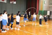 最初に、5年生が跳び方や数え方など、ルールの説明を行いました。