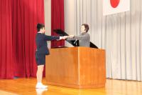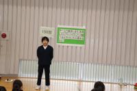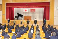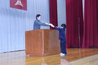 終業式では、2学期の取組の表彰、2学期がんばったことの代表の発表と少し寒かったのですが、体育館に全員集まって行いました。