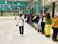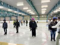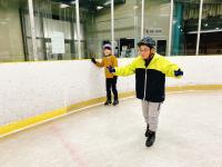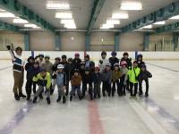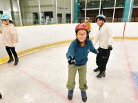 昨年同様、自分の足に合わせて紐をしめながらスケート靴をはくのに時間がかかったようです。