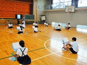 音楽の歌や楽器の演奏は体育館で間隔をとり、換気をしながら行っています。