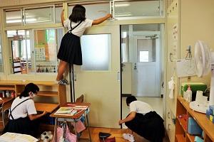 教室や玄関、体育館、特別教室などで、日頃掃除できない隅々を掃除しました。