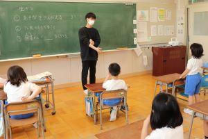 1年生は、国語「はなのみち」の挿絵を見て、「だれが」「どうした」を見つけて発表していました。