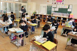 4年生は、総合の学習です。「川北の風土と歴史」の本の「昭和9年の洪水」のページを見つけ、真剣に読んでいます。