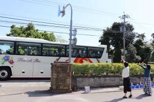 すごく大きなバスに驚き、みんなにこにこして手をふって「いってきます。」