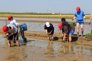 4年生は、最初少し戸惑っていましたが、地域の方や5年生の植える姿をみて、どんどん上手になっていきました。