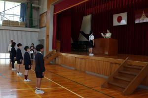 最初に児童会や学級の組織の任命を行いました。6年生の返事がとても気持ちよく、「やる気」が伝わってきました。その気持ちが他の学年にも伝わり、どの子も自信をもって返事をしていました。