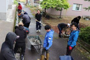 保護者の方は、各地区に分かれて、側溝の掃除等素早く作業を行っていました。