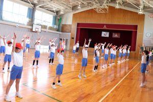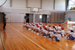 まずは、体育館で準備体操を行い、各学年に分かれて行いました。