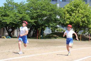 5年生は、新体力テストの練習です。まずは、ランニング、その後50mの練習をしていました。