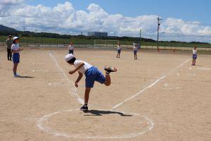 今日の種目は、50m走、ソフトボール投げ、立ち幅跳びです。