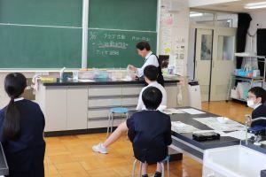 家庭クラブは、紺谷さんが指導してくださいます。今回は、礼儀作法でした。お礼のしかたを練習していました。場に応じておじぎに角度がちがうそうです。