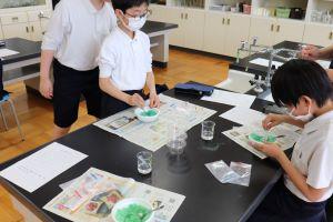 探求(科学実験など)クラブは、理科支援の寺田先生が講師です。今回は、お風呂に入れる入浴剤を作りました。