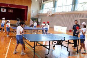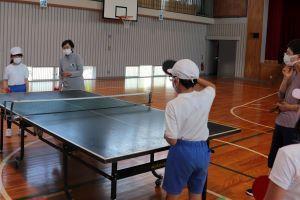 卓球クラブは、4名の地域の方が教えてくださいます。西村さん、森元さん、小島さん、西田さんです。ラケットの持ち方やサーブの打ち方をていねいに教えてもらっていました。