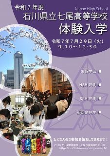 R7年度体験入学 7月29日(火) 9:30~12:30(受付9:10~)