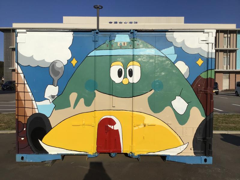 瑠璃光薬局志雄店(宝達志水病院前)にありますコンテナにウォールアート制作を行いました。
