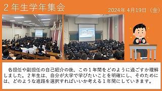 本日、2年生は、オンライン講座に参加しました。明日もこの時間割でオンライン講座を受けます。また、本日ある生徒のボランティア活動について新聞で報道がありました。報道された生徒だけでなく、他にも誰かの為にと頑張ってくれている生徒もいます。2年生は生活が落ち着いた人から生徒会が掲げる「一日一善」を実行していきます。