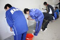 4月7日土曜日、ボランティア活動が行われました。「清掃に学ぶ会」の方々に協力を頂き、約160名の生徒が参加し、2時間半のトイレ掃除を行いました。清掃後は各掃除場所の代表者1名が感想を述べ、「最初は気が進まなかったけれど、清掃していくと、どんどんきれいになることがうれしかった。」と充実感や、達成感を持ったようでした。