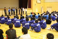 本日、第一体育館にて、陸上部壮行式が行われました。陸上部は24日、25日、26日と総体に出場します。