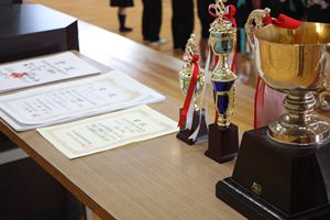 シンガポール国際数学チャレンジに生徒4名(3年生)が出場し、22ヶ国(45チーム)中、なんと2位に輝きました。この大会は世界中から高校生が集い数学の力を競い合う大会です。この成績は国内においても初の快挙だそうです。総体、総文の壮行式後、表彰披露が行われました。大会に出場した生徒はこの大会に出場し、改めて自分の世界の小ささに気付いたと全校生徒の前で話していました。