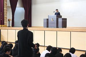 1月10日(火)全校集会が行われました。校長先生から「1年の計は元旦にあり」というお話があり、計画を立て、目標のために進むことの大切さを、お話されました。