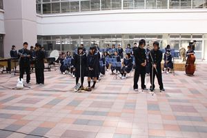 本日、アトリウムコンサートが行われました。図書委員、吹奏楽局、合唱部員が出演しました。図書委員の「かたり」や、合唱部の美しい歌声とともに「となりのトトロ」を朗読劇で披露しました。