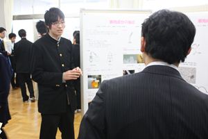 12月9日(金)にSSH(スーパーサイエンスハイスクール)事業における成果発表会が行われました。4月からテーマを決めて研究してきた内容と、その成果を理数科1,2年生が本校生徒だけでなく、保護者の方々、他校の教職員や大学の研究者の前で発表を行いました。その後のポスターセッションでは、発表、討論を通して、貴重な意見や助言をいただいている様子が見られました。生徒たちは発表の練習や準備をして、大勢の来校者の前でも堂々と発表を行っていました。