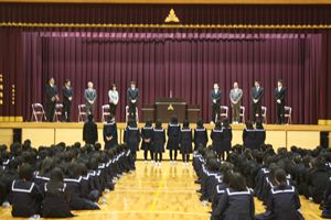 離任式では、9名の先生方が退任、離任されました。卒業生も大勢かけつけ、最後の別れを惜しんでいました。