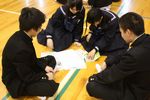 探検家の一員として山で迷った際、どのように行動するかという設定の中、いくつかの質問を個人で考えます。その後、班のメンバーに自分の考えを伝え、班の中で意見をまとめるという内容です。各クラスでは大きな笑い声が響き、まだ話したことがなかったクラスメイトとも交流を深めた様子でした。