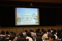 その後、本校の特色とも言えるSSH(スーパーサイエンスハイスクール)の活動、理数科の生徒による発表が体育館で行われました。