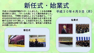 平成30年度新学期がスタートしました。18名の教職員を新たに迎え、「チーム七高」として動き始めました。校長先生は、「学問に王道なし」という言葉から、一つのものを自分のものにするために正面から正々堂々と突破する力をつけて欲しい、とお話されました。生徒の皆さんは真剣な表情で式に臨んでおり、新年度への意気込みを感じました。