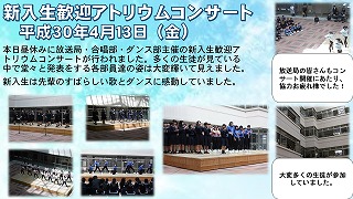 本日新入生と在校生の対面式が行われました。新入生代表の生徒・在校生代表の生徒がお互いに挨拶をし、固い握手を交わしました。その後、在校生全員で校歌を歌い新入生を歓迎しました。対面式後に職員紹介を行いました。1年生はまだ緊張している様子でしたが、先生方のユーモア溢れる職員紹介に表情もほぐれ、笑いの絶えない時間となりました。