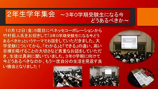 2年生学年集会 ~3年0学期受験生になる今 どうあるべきか~