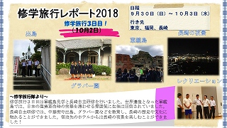 修学旅行最終日の4日目は、平和学習のため長崎平和公園に行きました。ガイドさんの案内や長崎平和資料館の資料で原爆の恐ろしさや平和の大切さなどを学びました。その後、長崎歴史文化博物館に行き、長崎の歴史に関する展示品を見て、長崎の歴史や風土に触れることができました。