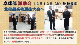 北信越高等学校ソフトテニス選抜インドア大会(1/13 こまつドーム)の個人戦に出場する男子2ペア・女子3ペアに大島学校長から激励費(PTA・同窓会より)が渡された後、激励の言葉がありました。