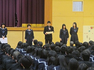 部活動等で優秀な成績をおさめた19名の生徒の表彰伝達式が行われました。次年度も、さまざまな分野で七高生が活躍してくれることを期待しています。