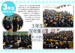 4月12日(水)、3年生の第1回学年集会を行いました。第一志望を勝ち取るためにこの1年間どのような姿勢で学習に取り組めば良いのか、学習方法などお話していただきました。この1年間苦しく、大変なことがあると思いますが、「チーム七高」としてみんなで力を合わせて頑張って行きたいと思います!