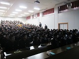 また、1月11日(水)に本校視聴覚室にてセンター試験激励会が行われました。激励会では3年生に対して井下学校長や金岡進路指導主事、清水学年主任から、センター試験に向けての激励やアドバイスがありました。3年生は緊張しつつも、しっかりと耳を傾け、センター試験本番にむけての気持ちを高めていました。