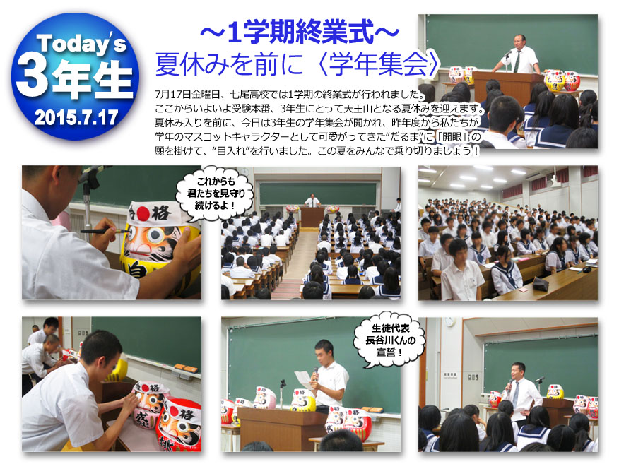 1学期の終業式が行われた7月17日、3年生が学年集会を行いました。