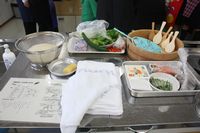 文系フロンティアコース体験入学では、開講式の後、中学生に事前指導が行われました。昼食は、サンドイッチと飲み物が無料で振る舞われ、注文の際、英語で注文するためです。中学生は事前指導の際に覚えた英語で注文し、本校生徒と楽しく食事をしていました。